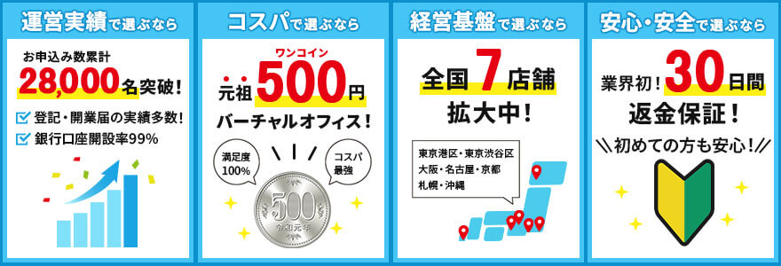 起業のため、バーチャルオフィスを利用することにしました。私はスマートフォンやPC向けのアプリケーション開発のフリーランスをしているのですが、起業をしようとした際に頭を悩ませたのが、オフィスをどうするかという問題でした。浅学だったのですが当初は業務がPCひとつで関係してしまう仕事なので自宅をオフィスにしてしまえばいいと思ったのですが、いざ起業するとなった際に、役所にオフィスの住所を届けなければいけないというところでした。また会社のHPなどに関してもオフィスを住所を乗せる必要があり、とてもじゃありませんが自宅をオフィスにはできない!かといって賃貸を借りるのが高すぎる!となった際に出会ったのがバーチャルオフィスという存在でした。その後いろいろとバーチャルオフィスの会社さんをあたったのですが、 こちらの会社では、バーチャルオフィスと営業代行を一緒にお願いすることが出来るというサービスをされているので、その点に魅力を感じ、こちらの会社にバーチャルオフィスをお願いすることにしました。 うちの場合は、社員数が少ないため、複数の業務を少ない人数でまわす必要があります。そのため、バーチャルオフィスとは別に、後々営業を別の会社にお願いする事も考えていたので、営業代行のサービスがバーチャルオフィスとともにお願いできるという点は本当に助かっています。